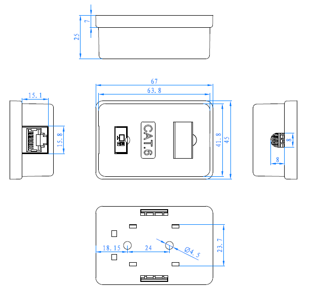 5. RJ45 JACK LIFE: 750 CYCLES MIN